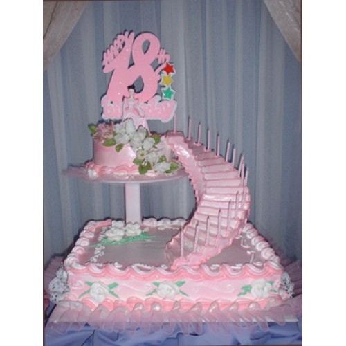 Adorable Debutant is a based cake in pink. First layer is the real cake and the second layer is dummy cake or cake made of styro.