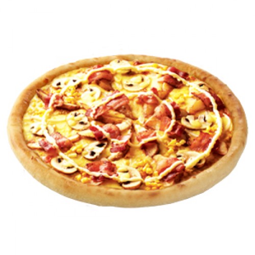 Pizza Sauce, Mozzarella Cheese, Potato Wedges, Onions, Corn, Mushrooms, Bacon, Mayonnaise