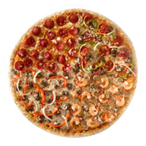 A largest pizza, 18 inches of pizza goodness that is perfect for parties. It is divided into our 4 most popular flavors so everyone is sure to fine their favorite.