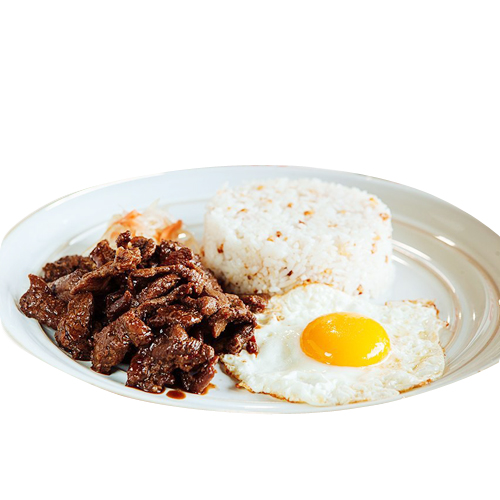 Beef Angus sirlon tapa served with garlic rice, tomato and sunny eggs