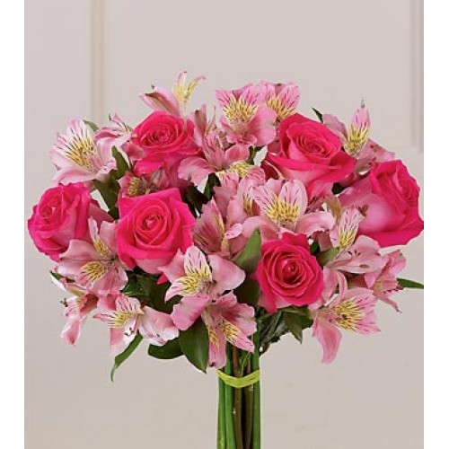 Mixed Pink Flowers contains Pink Roses and Pink Alstroemeria in a Bouquet