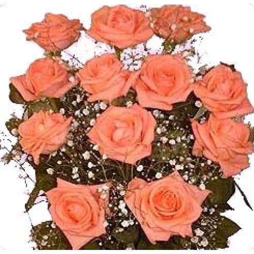 1 dozen peach roses in bouquet