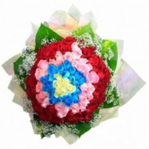 101 Multicolored Roses in a Bouquet.