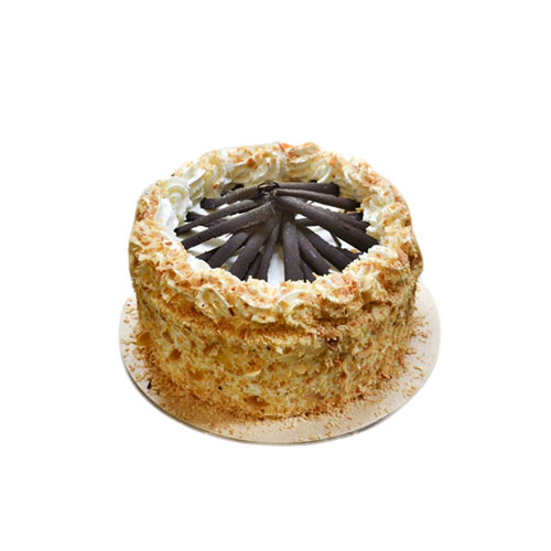 a layer of sansrival with cream, lots of cashew, almonds, pecan nuts and chunks of chocolate size: 8" round cake shipping Delivery: within Pasig, Makati, Quezon City and Sta. Rosa Laguna only. Please Note: